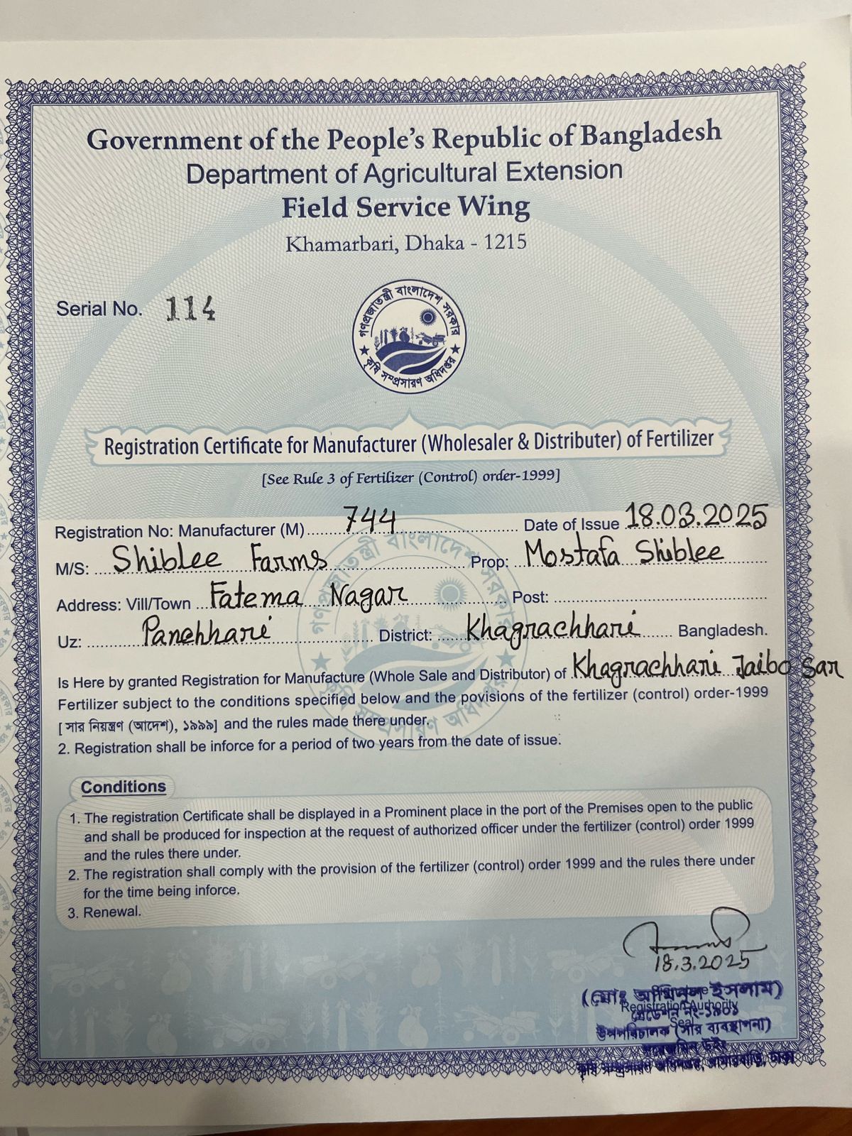 ২০২১ এ শিবলী ফার্মস এর "খাগড়াছড়ি জৈব সার" উৎপাদন এর কার্যক্রম শুরু হয়েছে।